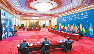 习近平最后强调,我们在中非合作论坛北京峰会上一致决定构建更加紧密的中非命运共同体。今天我们召开团结抗疫特别峰会,就是用实际行动践行北京峰会承诺,也是为国际抗疫合作贡献力量。我相信,人类终将战胜疫情,中非人民也终将过上更加美好的生活。(讲话全文见第二版)
